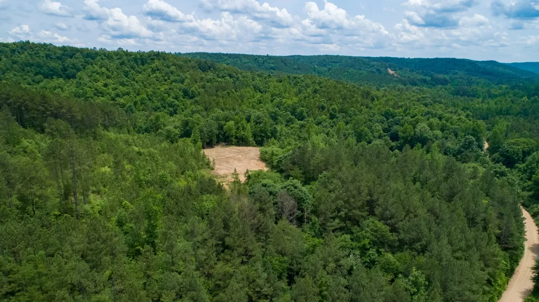 Wolf Creek runs through a quarter mile of hardwood trees with walking trails ORV trails up the mountain and a cleared spot ready for your cabin looking down the valley.
