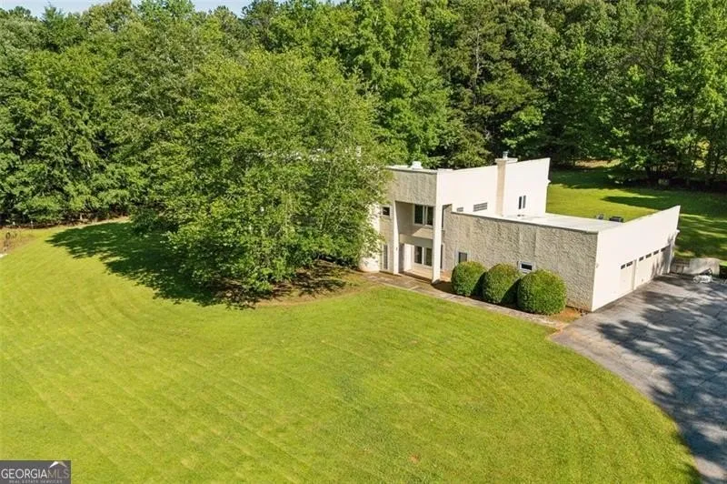 Cash-only investor special! Multiple Offers Expected. Own your own piece of Hollywood History. Secluded on five level acres, this flat-roof contemporary now boasts a 2022 white membrane roof with a dramatic row of skylights that pour daylight into the soaring two-story great room and indoor lap-pool wing. Clean modernist lines, a main-level owner's suite, office with wet bar, three-car garage with broad motor court, newer Pella windows, and solar pool equipment enhance the canvas. Nearby estate sales support an $850k-$1.2 M ARV once renovated. Minutes to Trilith Studios, Pinewood Forest, and Peachtree City, it sits squarely in Georgia's "Hollywood of the South." Sold strictly AS-IS; lender financing will not qualify. Proof of funds and a signed hold-harmless are required before showings. Quick cash close preferred-restore this modern oasis and capture serious equity!