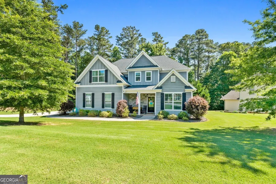Lovely 4 bedroom, 2 1/2 bath craftsman style home built in 2016 convenient to Trilith, Fayetteville, and Peachtree City. For those looking for a well-maintained property, this is a one owner, pet free home which has been professionally cleaned twice a month. Main level includes office/living room, separate dining room, family room, powder room, and beautifully appointed kitchen w/ the latest in design, including granite and stainless steel appliances with gas range. Hardwoods in the foyer, powder room, dining room and kitchen. Second level offers a spacious owner's suite with a lovely bath with a tiled shower, separate soaking tub, double vanity, and a spacious walk in closet. Second level also includes three additional bedrooms, full bath, and the laundry room is located adjacent to the owner's suite for added convenience. Elegant lighting and upgrades throughout the home. The covered porch looks out over the private sodded backyard with a natural wooded buffer. The neighborhood amenities include pool, tennis, pickleball, basketball, playground and a walking path which connects to the public paths to the nearby schools and surrounding area.