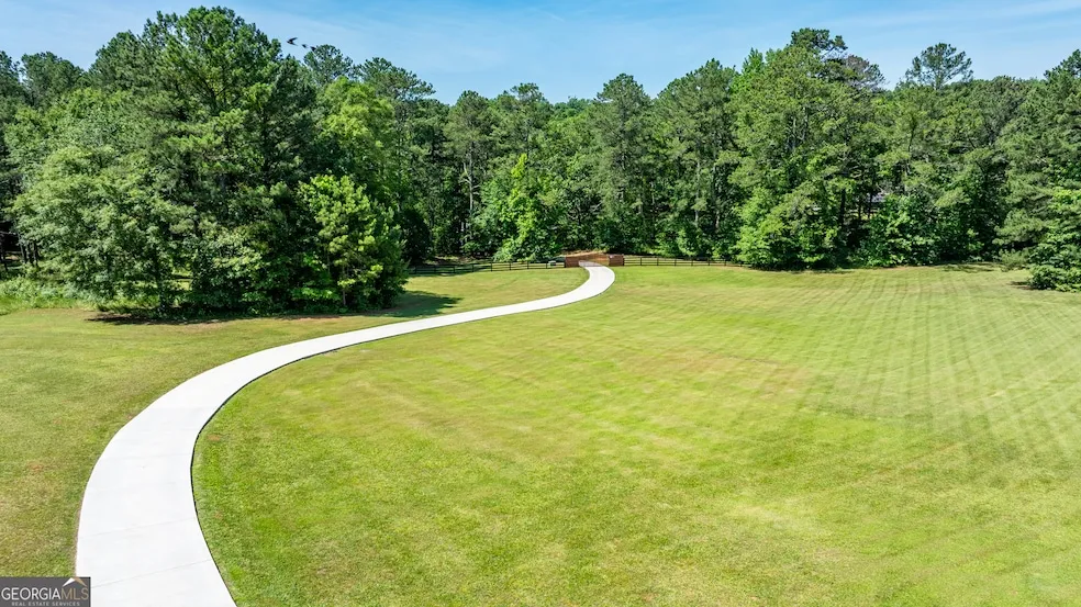 EXQUISITE MID-CENTURY MODERN LAKEFRONT ESTATE. Welcome to 129 Solitude, an unparalleled sanctuary of luxury and tranquility, a Mid-Century Modern lakefront estate meticulously crafted to offer complete privacy and serenity on a sprawling 17.7-acre paradise. The main house, boasting four spacious bedrooms and three full bathrooms, is an epitome of sophisticated living. Each detail has been carefully curated to create a harmonious blend of modernity and timeless elegance. Your journey begins through a private gated access, leading to a newly paved cement driveway that meanders gracefully through verdant pastures and alongside the tranquil lake, culminating in a breathtaking side courtyard. This inviting courtyard serves as a serene entry point, accessible from each of the guest bedrooms, providing a perfect blend of indoor and outdoor living. Step into the expansive A-frame living room, where wall-to-wall windows frame stunning panoramic views of the peaceful lake. The open-plan living, kitchen, and dining space is an entertainer's dream, featuring a state-of-the-art kitchen with a seated island, honed quartz counters, top-of-the-line gas range, a feature arched stove hood, and custom cabinets. An adjacent sunroom extends the living area, offering further dramatic lake views and opening onto a spacious deck for seamless indoor-outdoor living. The extravagant owner's suite is a private retreat, accentuated by arched doorways and a custom headboard. Luxurious touches abound, from the arched barn doors leading to a sumptuous bathroom with a standing soaking tub encased in glass overlooking a private courtyard, to finished cement floors and custom brushed cement counters. The glass surround walk-in shower is thoughtfully designed with ample built-in storage. A large walk-in closet with custom shelving and a private courtyard space featuring a striking rock retaining wall complete this sanctuary. Three guest bedrooms, situated opposite the owner's suite, offer direct access to the shared courtyard space, ensuring that every guest enjoys a slice of the estate's serene beauty. The separate renovated guest house is a marvel of design and functionality, featuring a vaulted living space, separate bedroom, full bathroom, and a versatile flex space ideal for a home gym, studio, or office. This estate is a showcase of luxury, with dark wide plank floors, a sophisticated built-in Sonos sound system throughout, and an arch theme elegantly woven through light fixtures and doorways. Beyond the main and guest houses, the property includes two additional buildable parcels, offering endless possibilities for expansion. Indulge in a lifestyle where every detail exudes high-end craftsmanship and luxurious comfort. This Mid-Century Modern lakefront estate is more than a home; it's a masterpiece of living art, awaiting your presence. Conveniently located close to Fayetteville, Peachtree City, Piedmont Fayette, Trilith, Hartsfield Atlanta Airport, the new US Soccer Federation HQ and all Fayette County has to offer.