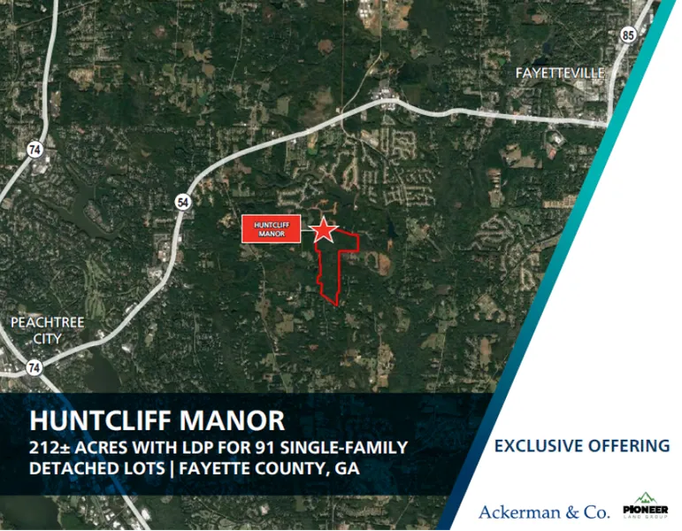 Huntcliff Manor, a 212-Acre parcel with Land Disturbance Permit (Ldp) for 91 single-family detached (Sfd) lots, is situated just south of Highway 54 convenient to an array of shopping and dining. The Community will have a minimum lot size of 1 acre and will have almost 40 acres of greenspace. Additionally, it will be served by a playground with picnic tables and benches.