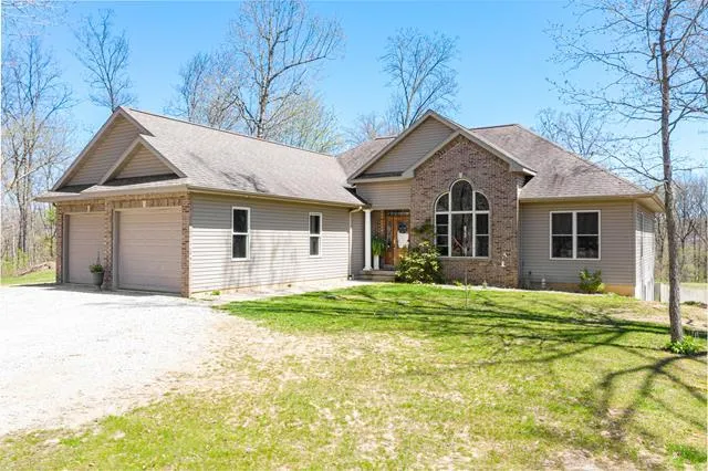 Welcome home to this beautiful property nestled on approximately 40 acres! Located at the end of a long driveway, this home features 3 bedrooms, 2 full baths, 12 foot vaulted ceilings, and a formal dining room. In the kitchen, you will find custom built cabinets, double oven, dishwasher, and an electric cooktop. The spacious living room includes a beautiful wood burning fireplace with 2 windows overlooking the back yard. The master bedroom is incredible! It joins the master bathroom, which includes beautiful countertops and a garden tub, and it also opens to the covered patio which has a hot tub! The hot tub overlooks the backyard and fully stocked pond, perfect for anyone who enjoys the great outdoors! Public water is available along US Highway 51. The current source of water comes from the pond, with a filtration system located in the basement.