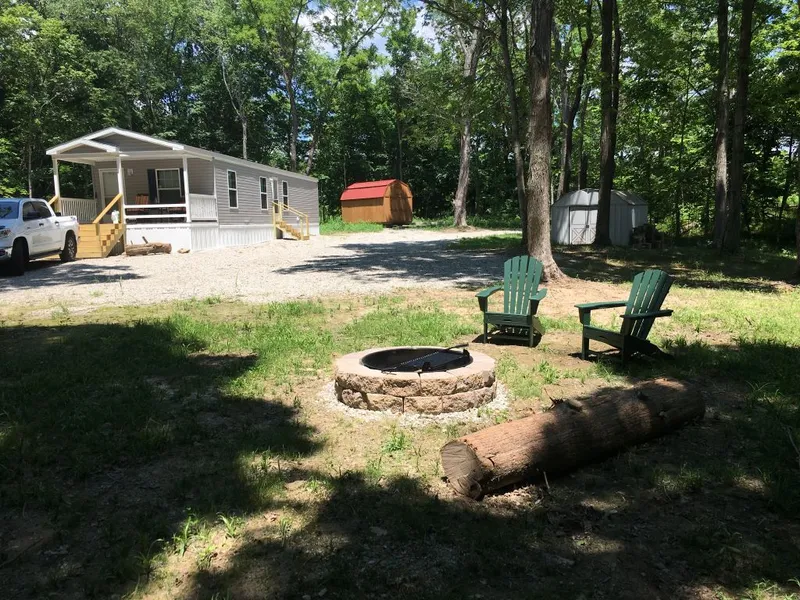 This beautiful property is in Fayette County Illinois and is turnkey ready for anyone looking for a secluded getaway, off-grid camp, or hunting/recreational acreage. The property is 58 +- acres in three parcels, there is a main cabin (16x80 prefab) with two bedrooms, one bath and all the modern comforts of home, a smaller cabin with its own full bath, and secure storage buildings for all your equipment. The smaller cabin has a shower, rest room and sink for additional guests, or that hunting budding that sleeps way too loudly. It consists largely of rolling hardwoods bordered by agriculture crops and CRP, with a food plot, ready for hunting season. Little Hickory Creek runs through the center of the property, the area's big buck highway, creating the three land features for excellent whitetail and turkey hunting, year after year. Thick secluded bedding, naturally occurring water and food...