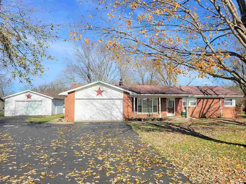 Country Setting.Check..Dead end road.check.Do not miss your chance on this amazing Ranch style home. This home features 3 bedrooms, 2 full bath, family room with elegant stone wood burning fireplace, living room with lots of natural light, dining and kitchen combo and with a eat in breakfast nook, over 1 acre of land, heat pump, all appliances included, all electric home and 4 car garage (detached 2 & attached 2). The central air conditioning, furnace and heat were all installed in 2016 approximately. Call Chris Hartman today at 765-277-6699 to schedule your personal tour or for any questions. Text 1019445 to 35620 for more information and photos.