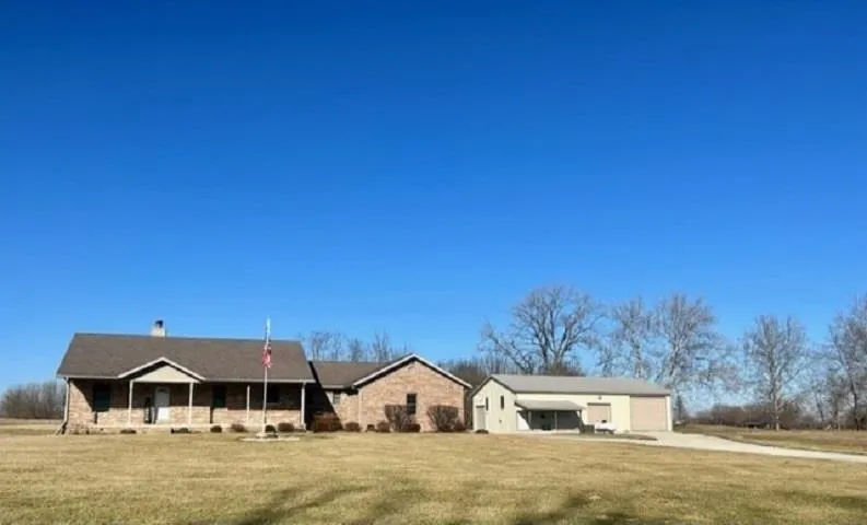 This elegant brick single family home sits upon 9 acres. 3 bedroom 2 bathroom ranch with a 2 car attached garage, and a separate heated barn that is complete with thoughtfully landscaped grounds that invite you into the front yard. Upon entrance, you are warmly greeted by hand scraped hardwood floors, fresh paint, and a bright and open floor plan seamlessly connecting the kitchen to the living room and leading to the inviting, sunny backyard. Meticulous attention to detail is presented in the kitchen with new quartz countertops, customized backsplash, freshly finished cabinets, and brand-name new appliances. A beautiful brick fireplace with an insert is located in the living area, along with a set of French doors that open onto deck for entertaining. Adjacent to the living room, there’s a comfortable master bedroom with an en-suite bathroom and a walk-in closet. A set of french doors in the master suite reveals a deck where you can drink your morning coffee. A basement that is perfect to house all your Christmas decor. Open expansive backyard with a pole barn that is every man’s dream! Kitchen for entertaining, water to wash cars inside, and a separate area to store yard equipment. A stamped concrete porch that is perfect for entertaining. This home is a dream home! If you are ready to live your dream, contact Rebecca Fox (765) 580-1674 to schedule your personal tour today!
