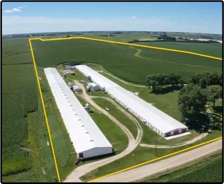 This is a high-quality farm that has received many years of chicken manure. Chicken buildings set up for cage-free or organic-started pullet growing or broiler growing operation.