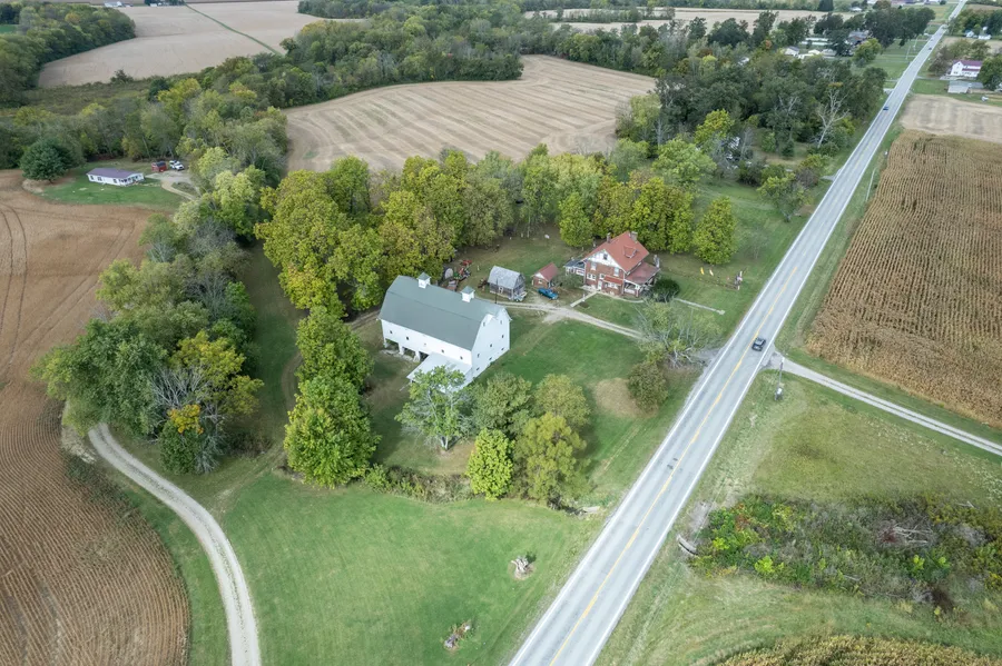 This lovely 1915 brick home with large barn and outbuildings sets on 19.2 acres. The home while flawed is intact in its original glory with beautiful woodwork, pocket doors, leaded and stained glass. Striking beamed ceilings can be found in the formal dining room and built-in window seats flank the the fireplace in the setting room. Full walk-up attic and full basement. The massive barn projects an iconic chemistry to the property and is stlll fully serviceable. Acreage consists of 19.2 acres with large shade trees and outlying approximately 12 acres is tillable (no current lease in place for tillable acreage) This is truly a rare find with endless potential. Property was appraised in May 2023 with a value of $400,000.00. Property is being sold as is.