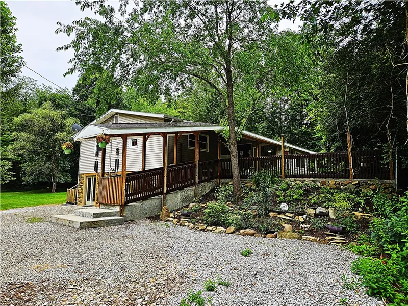 Privacy and Seclusion await with this Home on almost an Acre! Walk up to the Four Seasons Porch with a full wall of windows to sit and enjoy year round! Remodeled kitchen, with new cabinets, countertops, stainless steel appliances and serving station to Dining Room. Open Living Room with coffered Beam Ceilings and Pellet Stove! Huge Family Room, leading to the covered front deck, also a private balcony. Master Suite with dual closet space and a completely remodeled Master Bathroom! Updated Features throughout and a large walk in shower! Two more spacious bedrooms and another Full bathroom that's been updated! Tons of potential in the partially finished basement. A full bathroom almost finished, a bedroom, and a living room/family room, and what is set up to be a kitchen downstairs. 1-car detached garage and tons of parking available all on almost an acre! Just 1/4 mile from the Elementary & Junior High Schools, 2 Miles from a National Park and 15 Miles to Morgantown WV.