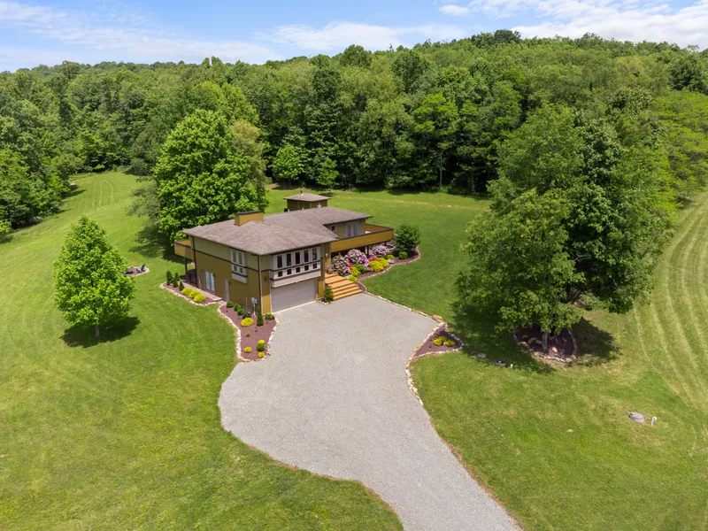 Looking for privacy and minutes to all the Laurel Highlands has to offer? From hiking, biking, skiing, fishing, boating, golfing and white water rafting you will find this lovely custom home with approximately 71.87 acres and an opportunity of a lifetime. Down a country road and surrounded by mature trees and grassy fields, it is a short drive to everything you are looking for but still within commuting distance of Pittsburgh. Perfect for your horses, organic farming, riding your side by side, hunting, or just getting away from the hustle and bustle. Custom built in 2011, this residence seamlessly blends with the natural landscape, echoing the work of Frank Lloyd Wright, whose masterpiece Fallingwater is located nearby. The living room has a wall of floor-to-ceiling windows and a large fireplace and the gourmet kitchen is open to a spacious dining room with views of the tranquil landscap...