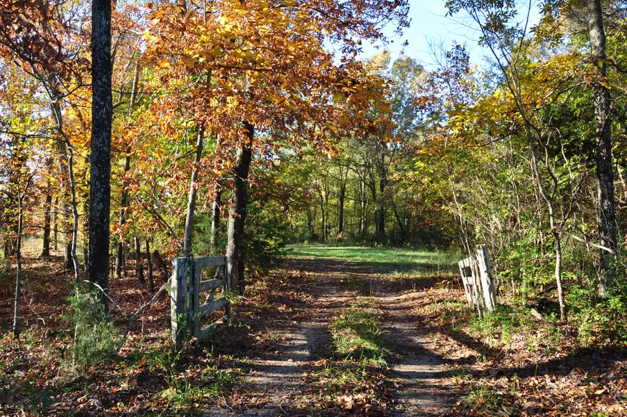 Beautiful 0.90 mile long entrance drive to the lake and home site