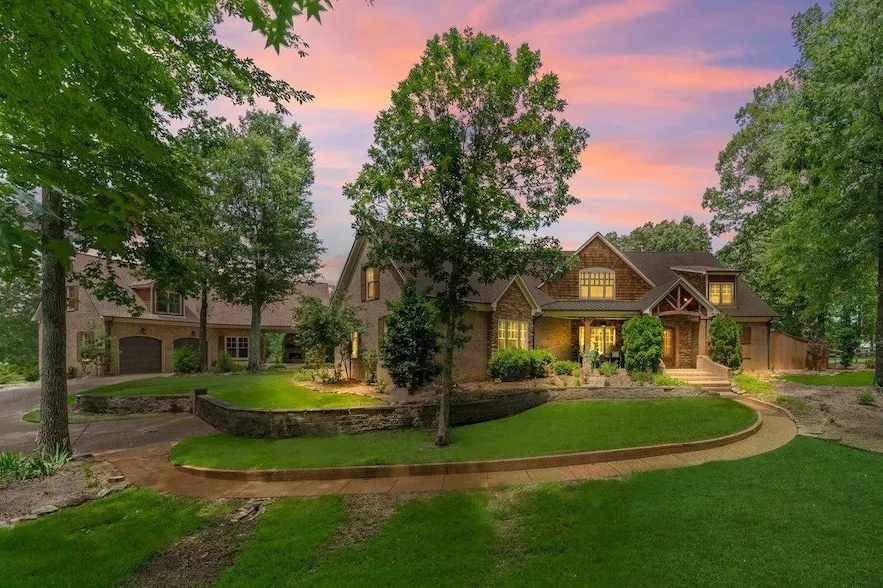 Discover the epitome of luxury living in Aston Park, Eads, TN, where elegance meets resort-style comfort. This stunning custom-built craftsman home offers panoramic walking trail and lake views, specially finished teak floors, and a bright, open-concept design. Designed for both refined living and grand entertaining, the home features a private pool and waterfall hot tub, an outdoor kitchen and fireplaces! Detached guest house has private parking, porch w/fireplace, living room, 2 bedrooms, full bath and kitchenette area. Covered porches provide seamless indoor-outdoor living, while the serene setting in Fayette County ensures privacy and exclusivity. Heated and cooled sqft includes guest house.