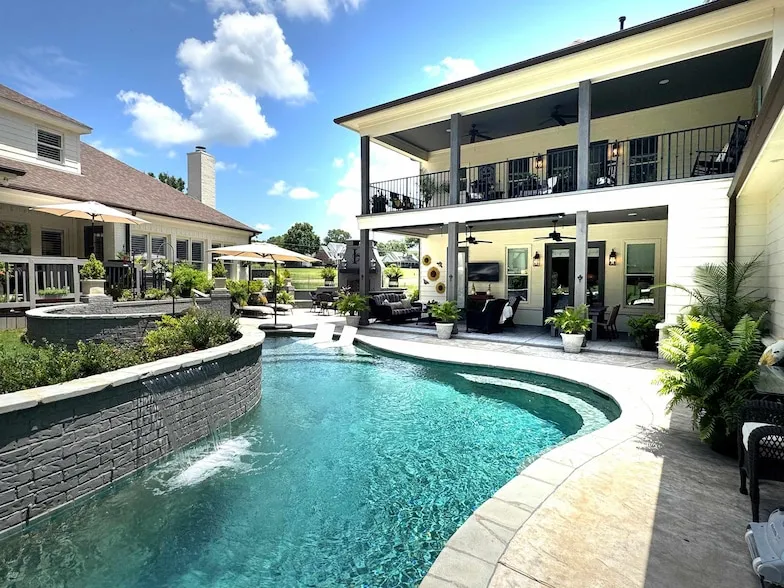 ENTERTAINER'S DREAM COMPOUND --Unique **Exceptional**One-of-a-Kind!! 4 BR & 5 1/2 BATHS!!!! Main house is exquisite & completely remodeled and updated with all hardwood down (except for baths & laundry are tile), Plantation Shutters throughout, gutted & remodeled bath with 5x5 open shower, SS appliance PKG, 16X11 Laundry! Plus more to this 3700 sq. ft. Main house; GUEST/POOL HOUSE is 2-story at 2400 sq. ft. w/20x20 XTRA RM W/Bath & mini kitchen upstairs and 20x20 down is slate flooring currently used as a media room/rec center w/apartment sz kitchen & bath--balcony upstairs & covered porch down looks onto pool area. 8 CAR 2400 SQ FT GARAGE IS WIRED w/surround sound, & 240 volt for workshop if desired, includes 800+ sf ft floored walkup attic; garage & guest house built in 2018; RV COVERED PARKING -GENERAC GENERATOR *******GUNITE POOL, HOT TUB SPA-LOUNGE DECK, OUTDOOR FIREPLACE WITH SEATING AREA -- 2 FULL BATHS ARE IN THE GUEST HOUSE/POOL HOUSE -extras: built-in's, xtra parking pad