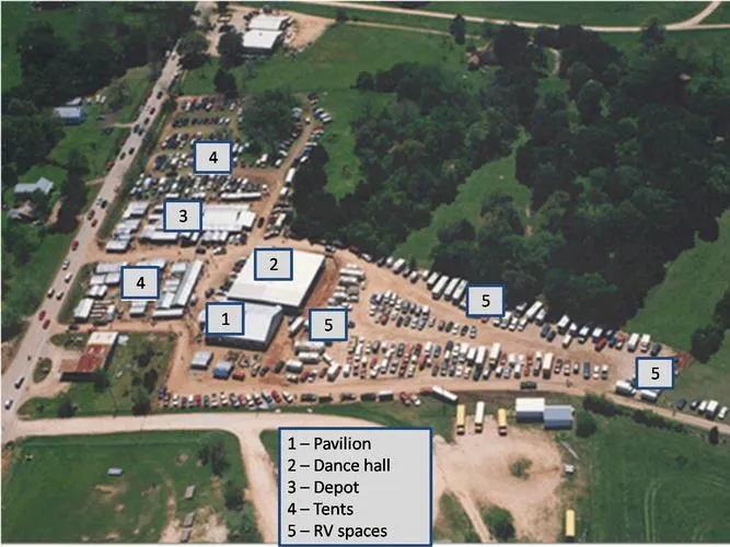 (13) Restroom facilities. (a) One set is located immediately adjacent to the Auction Barn. It features separate men’s and women’s full facilities including showers and are wheel chair accessible. (b) The second is adjacent to the Old Depot Building.