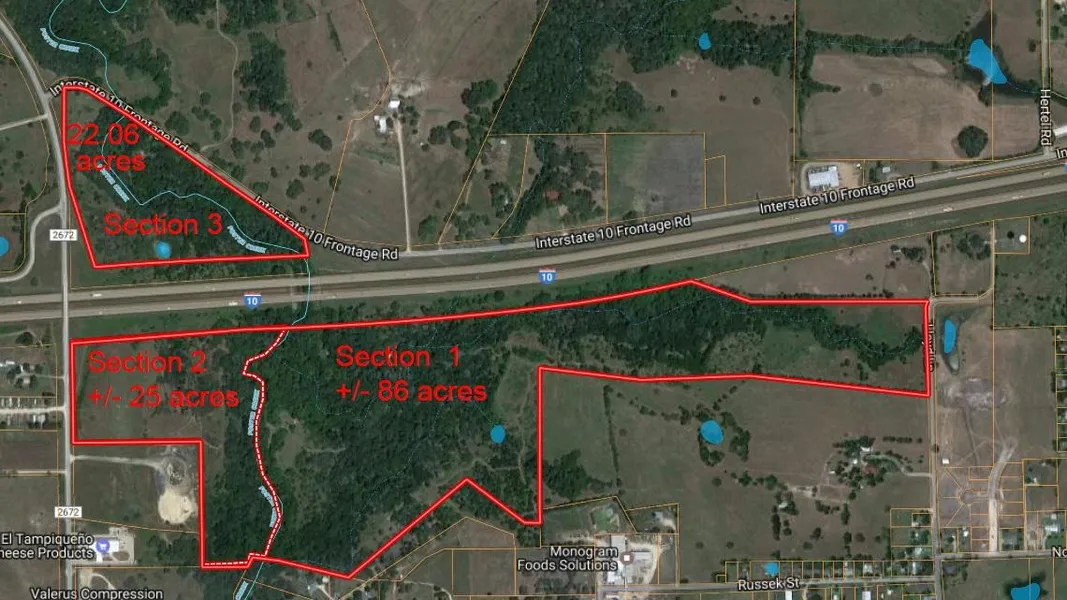 Research Parcel InformationFrom US Hwy 77 and I-10, head west on I-10 for approx. 0.8 miles and Section 1 property begins on your left. Continue on 1/2 mile and Section 3 property begins on your right