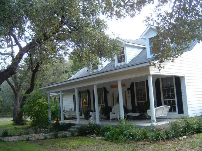 Lovely custom-built low country cottage nestled in the woods on five acres. Lush landscaping surrounds the house as well as live oaks and some small native pecans providing fantastic habitat for wildlife. Located only 6 miles from La Grange and 12 miles from Round Top, both fantastic school districts. This 4 bedroom 2.5 bath comes with hardwood floors in formal living, dining, family room, breakfast room, kitchen and master bedroom. A sunny breakfast room opens to the large screened in porch via double french doors. Whitewashed and beveled glass oak cabinets surround the open area kitchen that is loaded with counter top space, drawer storage, built-in trash drawer, butler's pantry, pantry, double ovens and sinks. A separate laundry room/sewing room also comes with numerous cabinets, counter and storage closet. Spacious describes the master suite with adjoining master bath. Double...