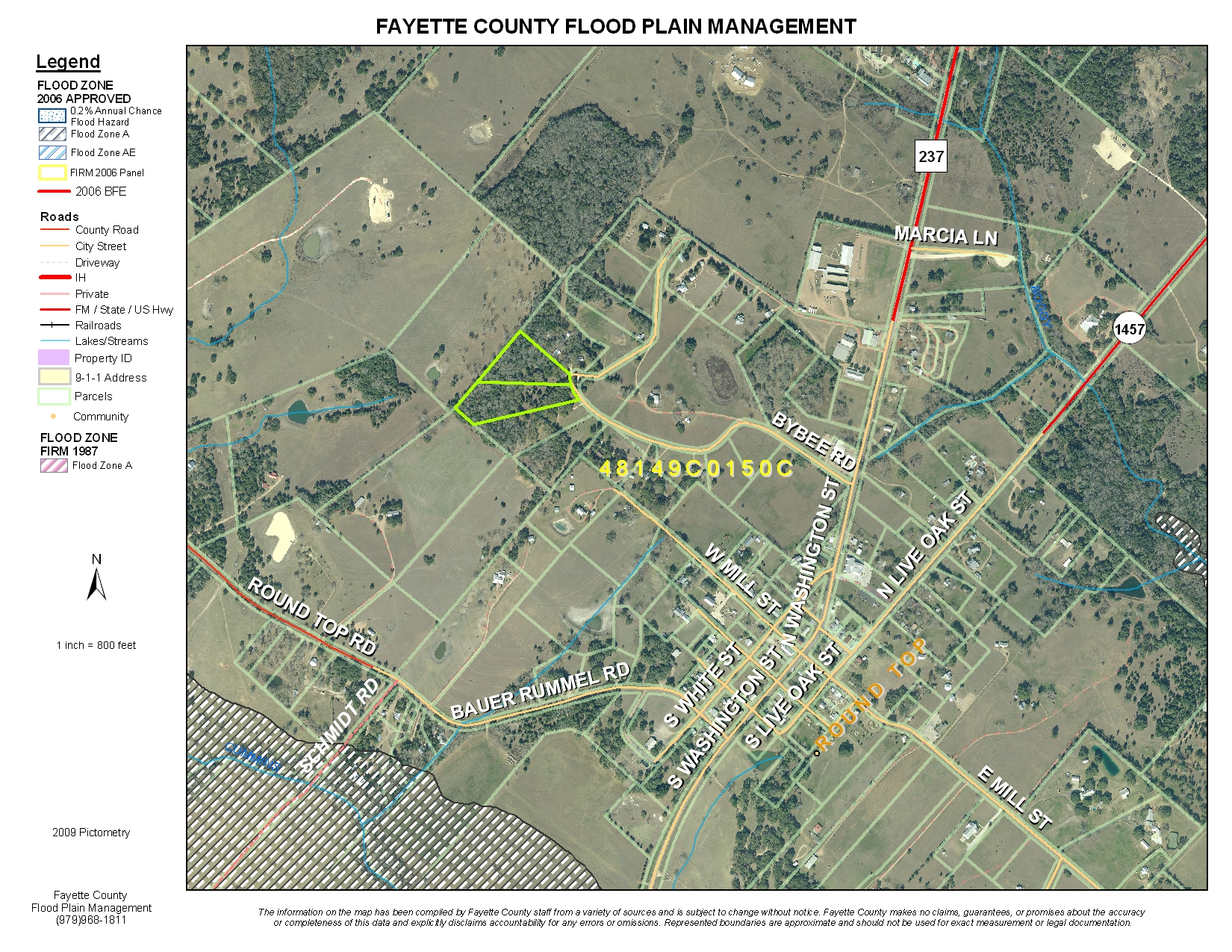 Research Parcel InformationFrom the Round Top town square, take Hwy 237 north approximately 1/4 mile and turn left on Bybee Road. Follow the left-hand road and look for the blue and white Round Top Real Estate sign.
