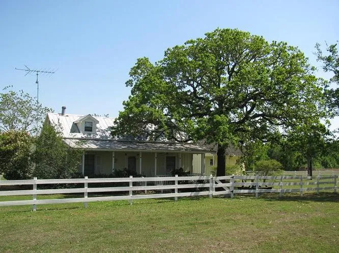 With over 1800 feet of frontage on HWY 237 just outside of Round Top Texas, and just accross the road from Marburger Farm,this property offers many possibilities. Authenic 2 story country farm house, with a second "granny cabin" and a large metal building.