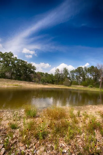 This scenic ranch has approximately 1,400 feet of direct frontage on Hwy 71 and is blanketed in oaks and other trees and brush. The topography is rolling with an elevation change of approximately 150 feet. A deep creek drainage crosses the north end of the ranch and a small, clear pond is located at the center. Additional acreage available.