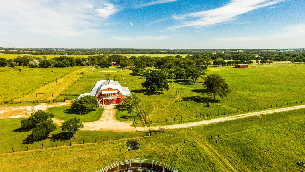 A fabulous horse breeding and training facility located in Fayette County, midway between Houston and San Antonio on the I-10 Frontage Road just east of Schulenburg; the property also has great access to Hwy 77 being just a couple of miles east of Hwy 77. The 84 acre property is divided into pastures with a 30 acre Coastal Bermuda field used for hay production. There are eighteen traps; four with loafing sheds, all serviced by piped water and troughs. The property, with frontage on the I-10 Feeder Road and Holub Road, is gently rolling with a few scattered oak trees.