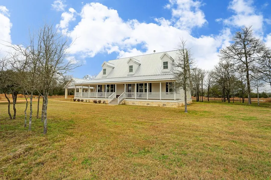 Beautiful new home with 2 ponds! Off the back roads of Round Top you will find peace and quiet and a beautiful newly constructed home. 2 story with large open kitchen to living area. Large windows all around to take in the beautiful setting around 2 ponds - one in front and one in back. 4 Bedrooms, 3 Baths with study. Massive wrap around porch on 3 sides!