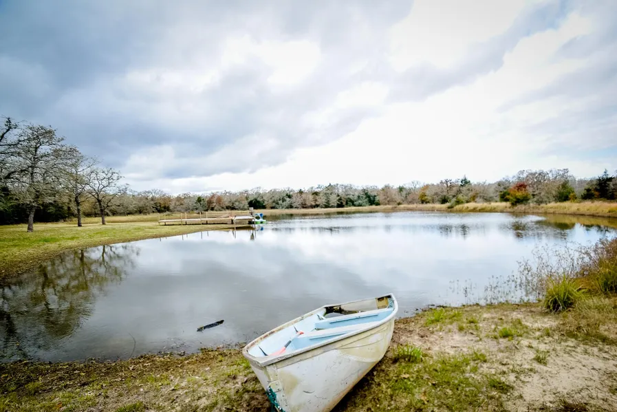 Centrally located on State Highway 95 a few miles north of Flatonia with gated access, this property offers a nice house, barn, 1 acre pond with pier and wooded acreage. Enter the gate and drive a short distance through the trees to the home. The home is on a slab with hardiplank type exterior. Welcoming porches lead you into the dining room and kitchen area with oak plank flooring throughout the home. The kitchen is roomy enough and features a good size pantry and access to the laundry room. The living room is spacious with a back door to the deck. The bedrooms are split with Master on the West side. The master is and has adequate closet space plus a private bathroom. The hallway takes you to the 2 bedrooms and a full bathroom.