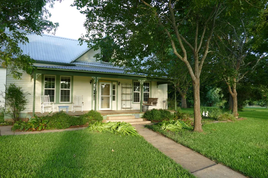 Situated at the end of a mile gravel road and accessed by deeded easement through other tracts of the original Koepke estate, this quiet tranquil farm is a gem in the rough. Situated in a pastoral setting, the 1 1/2 story country house is nestled within 3 or 4 acres of landscaped botanical wonderment. The trees, which include a majestic oak, stately pecans, red bud trees and mature crape myrtles, shade both the house and the lush St. Augustine lawn. Hidden among them are fruit bearing trees of peach, fig, kumquat, and lemon. Interspersed among the trees are beautiful mature shrubs of Rose, Oleander, Wisteria, Morning glories, and Salvia giving you a lush and colorful palette to continue to develop as your own. Three wells and an extensive irrigation system in the yard complete the picture, giving you numerous hose bibs and water sources to maintain and expand your landscape. The Manton Spring Branch creek, which flows to the Colorado River, borders the south property line and gives you a place to explore and play. A stand of Blackberry bushes and additional mature pecan trees flank the north side of the barn but leave plenty of acreage containing fertile sandy loam soil for gardening, intense farming, or intense grazing. The Farm is currently under an agriculture exemption with cattle. Neither the house nor the barns flooded during Harvey!