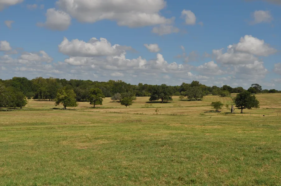 This scenic 150 acres is situated just 3.5 miles South of I-10 near Schulenburg and is conveniently located 1.5 hours from Houston. It features rolling terrain with scattered mature Live Oak trees and a Pecan bottom along the West Navidad River. Wildlife is abundant and the rolling hills provide several scenic building sites. The property is crossed fenced for rotational grazing and there is a hay patch. Improvements also include a 5,575 sqft (per FCAD) metal barn previously used as a milking barn. A large equipment barn is also in place along with multiple water wells and three phase power.