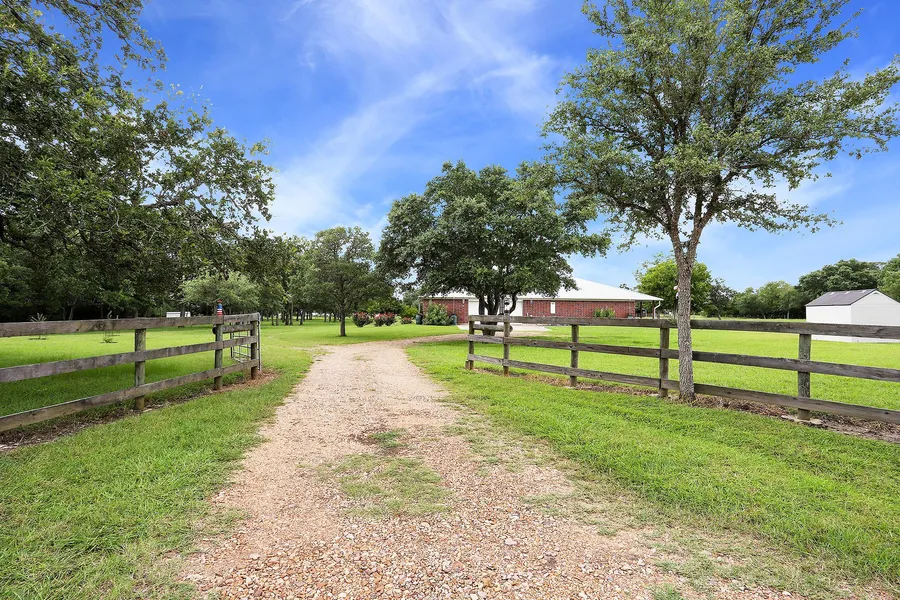Beautiful live oak trees set the scene for this 9-acre property. The custom home offers four bedrooms and two full baths with an open living room, dining, and kitchen. The added feature is a separate 1 BD/1 BA guest quarters with a full kitchen and living area. There is a RV hookup as well. A three-stall horse barn graces the property. The potential of this property is endless with it being located only 2 miles from the Round Top Square.