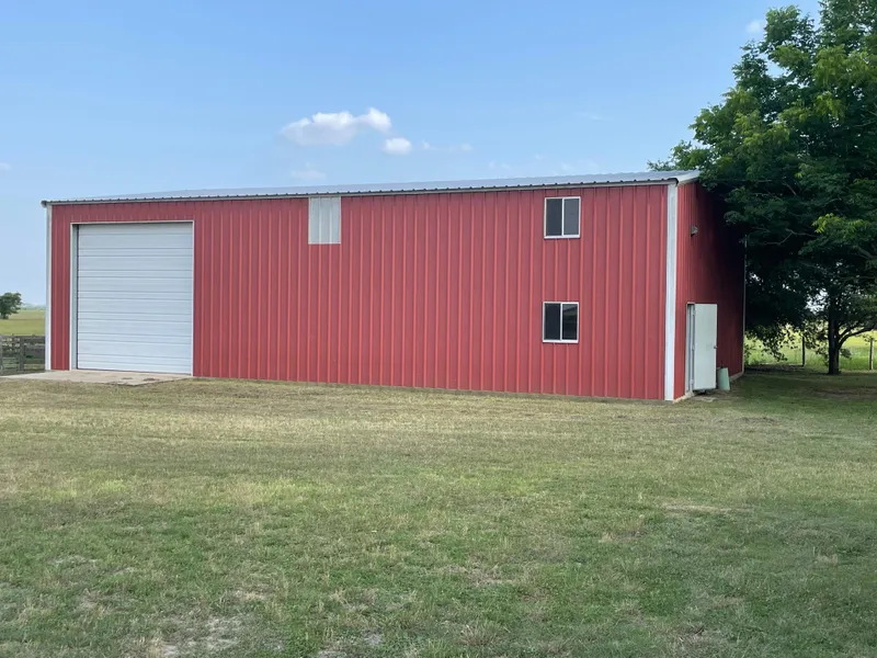 Perfect 12 acre horse ranch. Barn, pen, corral with hay storage. The fully insulated 6 year old barn has 2400 sq ft downstairs and 800 sq ft upstairs. With an inside wall and plumbing this can be turned into a 2 story barndominium or barn with living quarters. 6 miles south of Interstate 10 at Flatonia on a hill in rolling country with a view for miles. The pond has several huge live oaks around it. Additional acreage available.