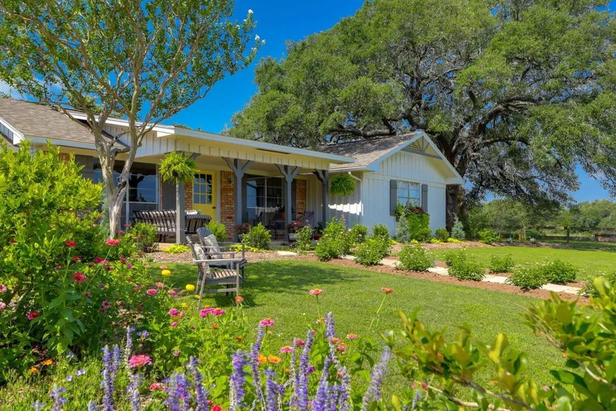Nestled on a hill, this Ag-exempt 10+/- acres property is surrounded by stately oaks, pecan, and magnolia trees. The 2-bed, 1-bath home has been recently painted, and the roof and A/C unit are two years old. Natural light illuminates every corner creating a warm and comforting ambiance. The heart of the open-concept living area is an inviting wood-burning fireplace, perfect for cozy evenings. The bedrooms and bathroom are spacious with plenty of storage. Step outside to be greeted by the beautifully mature landscape and bucolic views, which accentuate the essence of southern living. Enjoy a coffee in the morning in the garden, and a glass of wine in the evening under the stars. Two spacious barns provide storage and shelter for any agricultural pursuits. Additionally, the property benefits from a cattle chute and well water source, guaranteeing a reliable supply for all farming and garde...