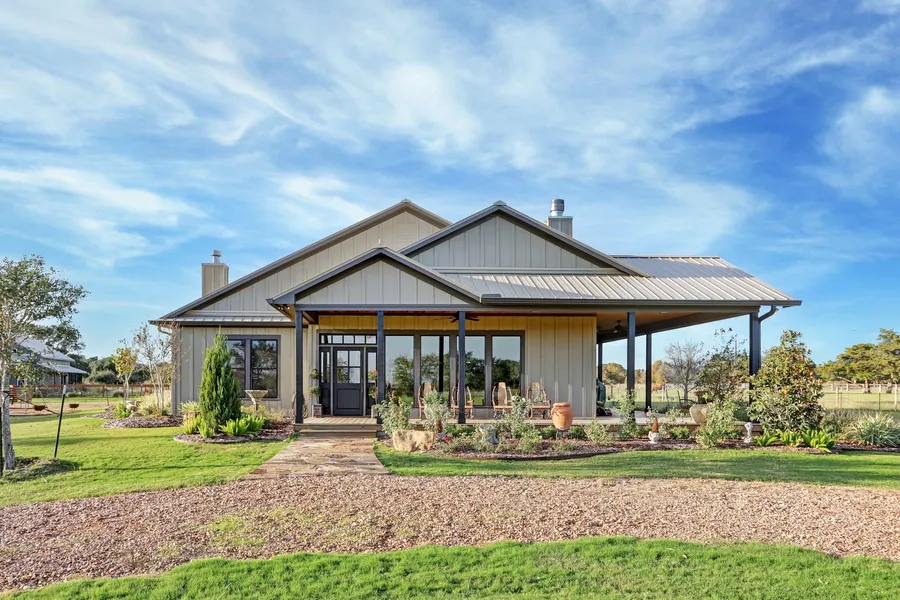 This idyllic Round Top retreat is nestled on a pristine 4 acres on the sought after Hackemack Road. Constructed with careful attention to style and craftsmanship, the open floor plan features 100+ year White and Red Oak floors, vintage beamed ceilings, and stacked stone fireplace. Rich natural light from the large windows flows throughout the entertaining spaces. A Foodies dream, this spacious new kitchen boasts a 6 gas burner & griddle Ilve Majestic stove, pot filler, 2 farm sinks, custom hand painted tile backsplash, Quartzite countertops, huge custom island and an ice maker. The exceptional floor plan offers privacy and separation of space with a well-appointed primary suite boasting a luxury ensuite bath, ample walk-in, cedar-lined closet with packing station and a Dutch door leading to a private porch, perfect for morning coffee! There are 2 additional bedrooms that share a bath.