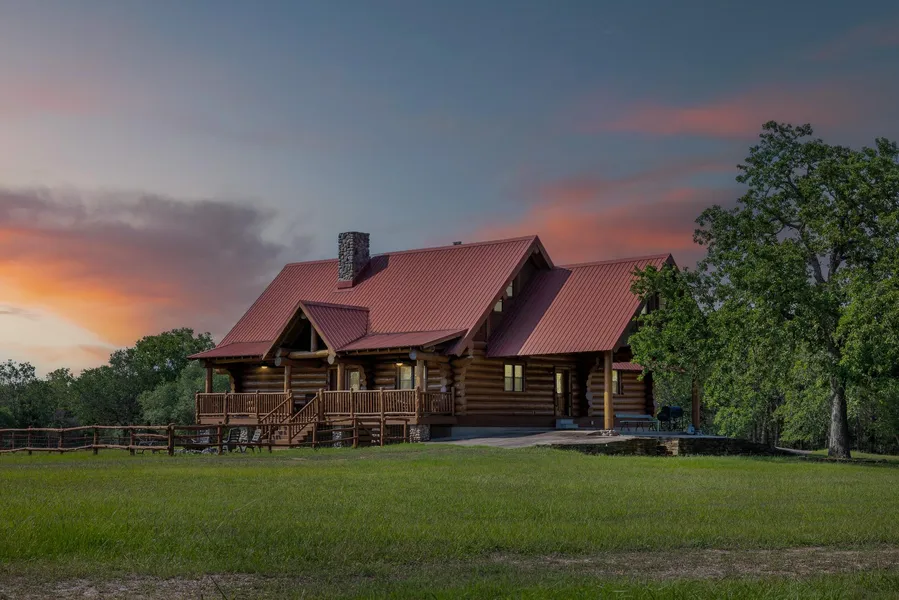Every now and then, the commanding Lodge you always dreamed about comes to market, and when it does, your heart stirs. This is one of those times. A beautifully maintained, true custom Log home with thick, warming walls covered in natural wood, set on 35 private acres. Inside are 4 bedrooms, 2.5 baths and all the traditional Lodge touches, including, wood walls & ceilings, huge beams, River Rock fireplace, wood floors, custom Antler Chandelier, Stainless Steel chef's appliances and butcher block counter tops in the kitchen... and it sells furnished! You'll never experience another gray day with all of the windows making the home light and bright. There is even a spa-like room with a hot tub! Outside, covered porches allow you to follow the sun throughout the day, while there are 2 fully stock ponds with piers creating the mood for enjoying nature at its finest!. The welcoming floor plan offers 2,811 sqft with great separation of the primary and guest bedrooms. The fourth bedroom could be used as a private office. The weathered barn has so much character and is great for storage or parties!. Perfect location between Fayetteville and Round Top!