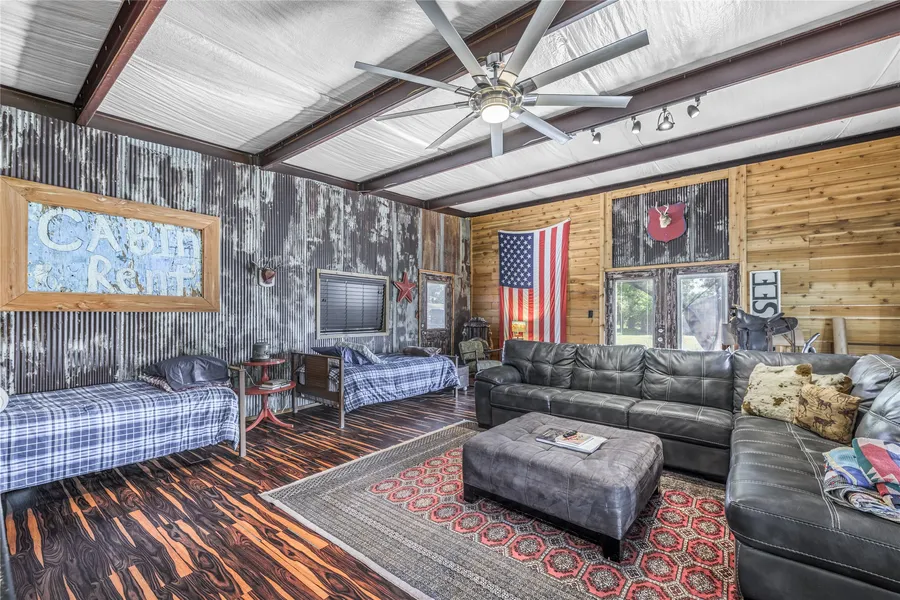 Out back, a wonderful porch designed for entertaining sets the stage for memorable evenings—whether enjoying dinner under the Texas sky or simply relaxing in the quiet beauty of the countryside.