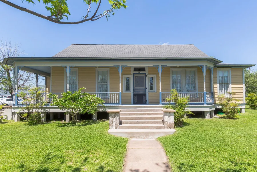 Historic cottage built in 1905. Large corner lot with back alley access. Large covered front porch, wrapping to one side of the home with architectural balusters and balustrade. Once inside you will find vintage charm at its finest. Unique architecture surrounds you from the unique doorway casings and moldings to the original gorgeous long-leaf pine floors. Each room has the original crown moldings, tall baseboards, window wood casings, doors and French doors. Several built-ins and magnificent wainscoting throughout! To the right of the entry is a parlor, dining room, kitchen and utility room. To the left are 3 bedrooms, a sitting area and Victorian bathroom. A light and bright kitchen with vintage, yet trendy, open dish racks, marble countertops and a vintage stove. 160 SF metal building for storage at back of property. BUYER INCENTIVES! Call for details!