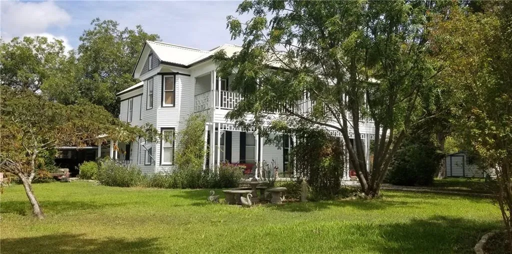 Texas history for sale in La Grange, TX. This grande old lady began her life around 1840 by Joseph Shaw, now known as The Pecan House. As time went on she was expanded to her current 3354 SF per FCAD. This 4 bedroom, 3 bath, 2 story home is beautifully appointed and sits on a huge corner lot in town with ancient shade trees and garden areas. 2 Masters, 1 up and 1 down. Recently painted outside to match her beauty from yesteryear. Large covered front porch and 2 upstairs verandas overlook the inground pool, gazebo, fish pond, outbuilding, smokehouse, greenhouse, hot tub and stone patio in the private backyard. Formal living, formal dining, large island kitchen, wood floors, great natural light, exquisite staircase with a library in the upstairs foyer. The downstair's master bedroom is an artist's delight with spot lighting for the northern light in all four corners. Here's a place that you can Call Texas Home!!