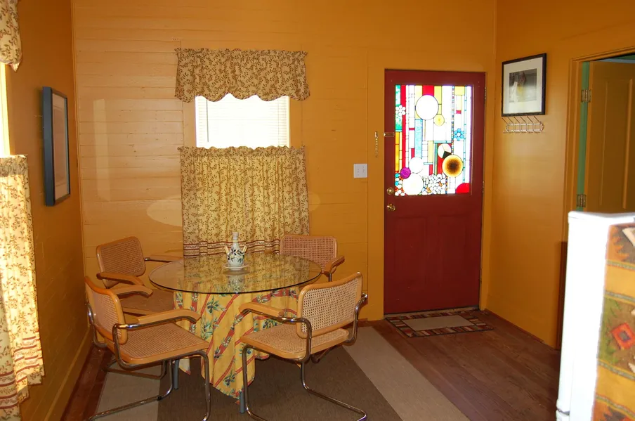 Don't miss out! Just a couple of blocks off the town square in Fayetteville, antique cottage with 10'+ ceilings, pine floors and walls. Relocated from Washington County to Fayetteville and renovated with cedar board and batten siding, metal roof, central air & heat, indoor washer/dryer hookups. Designed for simple, efficient living. In addition, this property offers a 30x36 metal storage building with three partitioned bays each with 10 ft wide roll-up doors. All bays are currently leased at $75/each per month. 75x75 lot has a recently installed privacy fence. Serviced by city water and sewer. Call today, 979/378-4100!