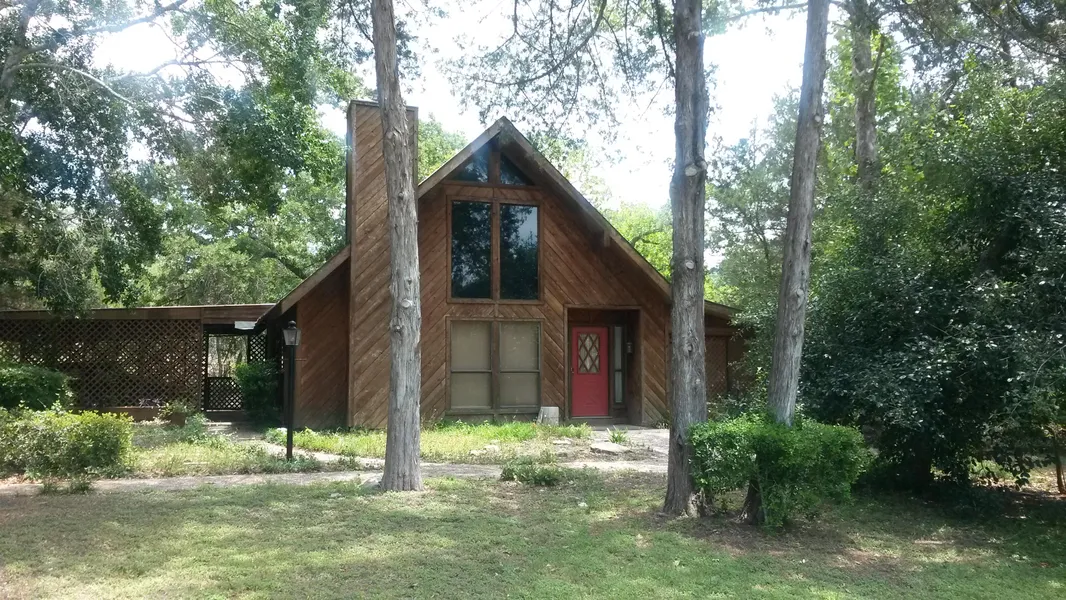 Nestled in a mixture of trees is this A-Frame, metal roof, CA/CH, cedar home on .071 acres (Per FCAD). Massive front windows are home to the living, kitchen & dining areas. Parquet floors in living & dining areas. In the winter warm up with energy efficient wood stove. Patio doors open to screened-in porch, for your morning coffee. Separate 1/2 bathroom downstairs. Kitchen has glassed cabinetry, tile counter tops and bar. Nice 2 door panty and separate small utility. Celling fans throughout the house and porch.