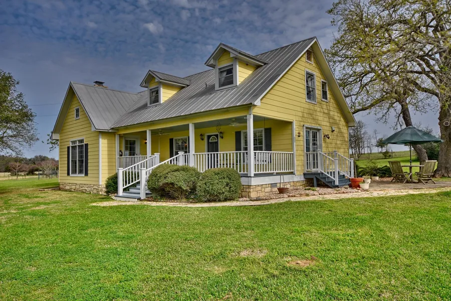Idyll, charming weekend getaway or year round abode that makes you grateful for every minute you are there. Well maintained house that leaves you free to enjoy the country surrounding beauty-hay meadows, cattle, longhorns and the most beautiful sunsets you can imagine. 2 Bedrooms, 2.5 baths, cathedral ceiling family room with stone wood burning fireplace & well appointed kitchen (with retro Chambers range). Broad front porch which allows for al fresco dining or blissfully rocking the day away.