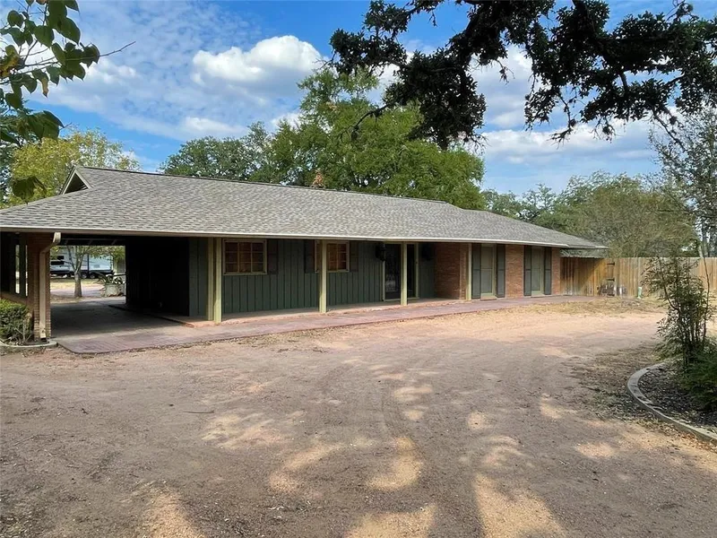 According to family & friends that this home was designed by a student of Frank Lloyd Wright. As you walk through the double front doors into the tiled foyer, enter the formal living room. The adjoining family room contains a wall of glass looking into the beautiful backyard, covered with mature live oaks. A focal point brick wall houses a fireplace & some built-in cabinets. The dining room features built-in upper cabinets to display china and lower cabinets fitted for linens & silver. The kitchen has granite countertops, a double wall oven, also a wet bar & a small refrigerator. As you walk down the long hallway, another bedroom & a bath adjoins the primary bedroom through a dressing room. The dressing room has ample closet space, shoe storage & a sit-in make-up vanity. The large primary bedroom includes built-in shelving & a walk-in closet. The ensuite has a whirlpool tub, double vanity & another closet. This property is estate styled with its beautiful live oaks & country feel.