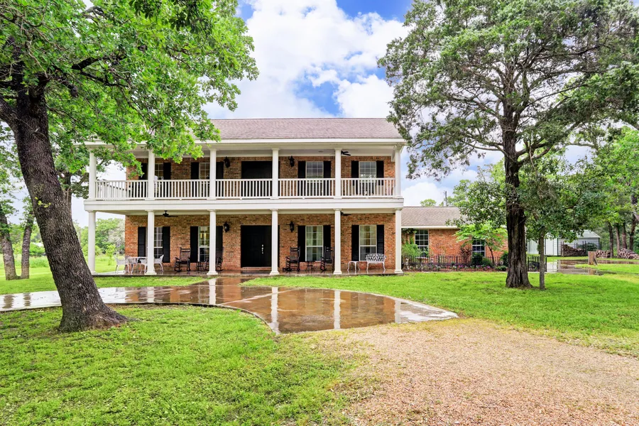 Fantastic location on Round Top Road only 3 miles to downtown! An ideal combo of dense woods & open meadows. Entry leads to & through a forested buffer along a winding road w selectively cleared areas. From the stately home there are beautiful views overlooking a picturesque & stocked pond. Built by locally respected builder, Thielemann Const. Co, this beautiful home w covered porches takes advantage of the surrounding woods & abundant wildlife. Thoughtfully designed w high ceilings, enter through the double front doors to a beautiful entry & then into a spacious family room w large wood-burning fireplace. A light-filled dining room is adjacent to the family room & country kitchen w generous cabinetry, & secondary prep counter w additional sink. Nearby, an office nook is just around the corner. Upstairs & down there are well-sized bedrooms w ample closets & custom built-ins. Out back there is plenty of designated seating areas & walking trails to a creek-like setting w firepit.