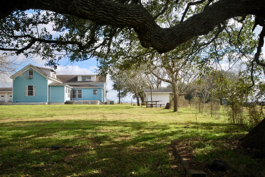 Great Location just minutes south of Schulenburg, 10.94 acre tract on paved Vacek Loop. Cross over the cattle guard and follow the road that leads you to the two story home which is located at the highest point of the property. Beautiful mature oaks are located on the property with nice open areas for livestock grazing. This acreage is presently in Ag valuation and is fenced on all sides and also contains cross fencing. This property will make a convenient weekend/getaway property from the city and is only 1 hr from Katy. Enjoy county living and watch the wildlife that passes through the property. The two story home needs care and has 3,256 SF. The upstairs area is approximately 1,204 SF and has ample room for bedrooms. A wood stove is located in the family room. 1 bedroom, bath, dinning, kitchen and office area is located downstairs. There is a large three car garage, equipment shed and...