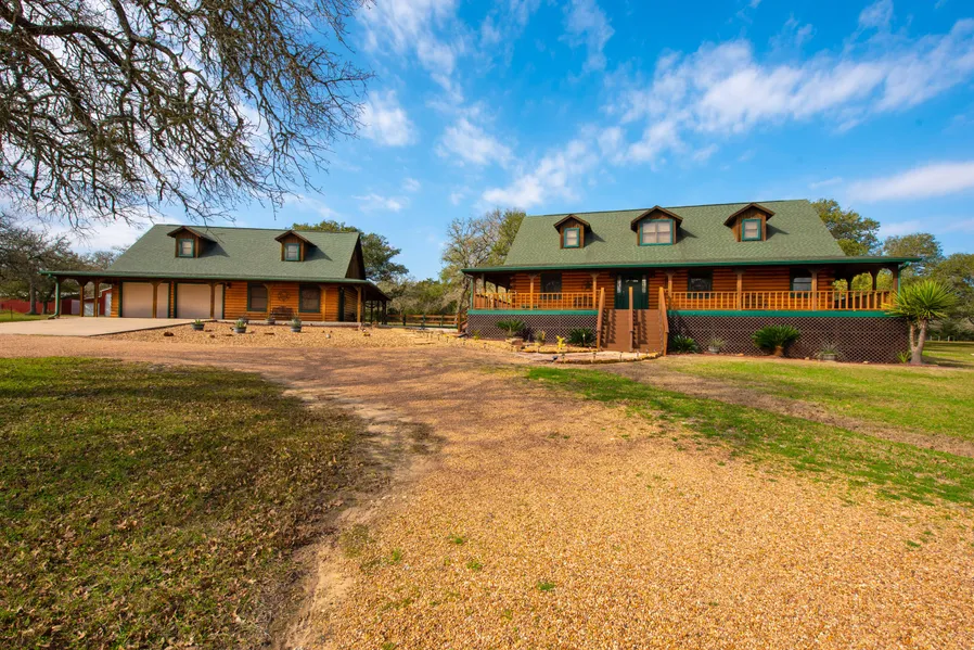 Ten absolutely gorgeous wooded acres with mature live oaks creating a manicured, park-like setting. Great 3/2.5 main home with primary bedroom down, two bedrooms and full bath upstairs, separate office space downstairs, spacious mudroom/laundry room, combo kitchen/dining, upstairs den/loft overlooking living room. Beautiful covered wrap-around porches surround the home, giving you a view of the lovely property.