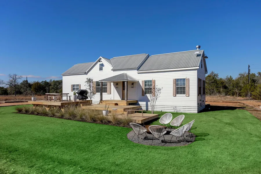 Step into a world where time stands still, and history whispers through the walls of the 1840s farmhouse nestled on the serene 8-acre property in Round Top, Texas. As you approach this lovingly restored farmhouse, you'll be captivated how its old-world charm meets modern elegance. The primary suite boasts a luxurious ensuite bathroom, ensuring your comfort and privacy. The second bedroom, with an adjacent bathroom, offers a cozy haven for restful nights. There is also a loft style bedroom accessible with a ladder from main bedroom. In addition to the main house, there is a guest house with 1 bedroom and 1 bathroom. Its the perfect addition for your family and friends to have their own separate space. Outside, the property unfolds like a painting, with rolling hills, lush greenery, a beautiful pond, and a sense of tranquility that soothes the soul. You're only a mere 4 minutes away from the charming Round Top Square and just 2 minutes down the road lies the renowned Marburger Farms.