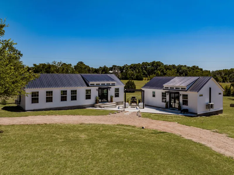 Located twelve minutes from Round Top on 3.36 acres of open land, The Southern currently functions as a short-term rental. Completed in 2023, this modern residence boasts a total of 1,800 sq.ft. of livable space: The main house measures 1,120 sq.ft. and the guest house, 680 sq.ft. Both feature clean and contemporary design, each with a bright and airy bedroom and living space with full kitchen in the main house and a coffee bar in the adjacent guest house. Neither Austin nor Houston are too far away - around ninety minutes drive - allowing you to enjoy the privacy and calm of the countryside while remaining connected to urban life. This property is flexible: As a primary residence or weekend retreat, you have the option to utilize both spaces, rent them out for extra income, or even rent one while enjoying the other for yourself. With The Southern currently booked for Round Tops winter antiques show and already accepting bookings for the Spring Antique Festival, this property has real income potential. A true diamond in the Texas rough, The Southern does not disappoint!