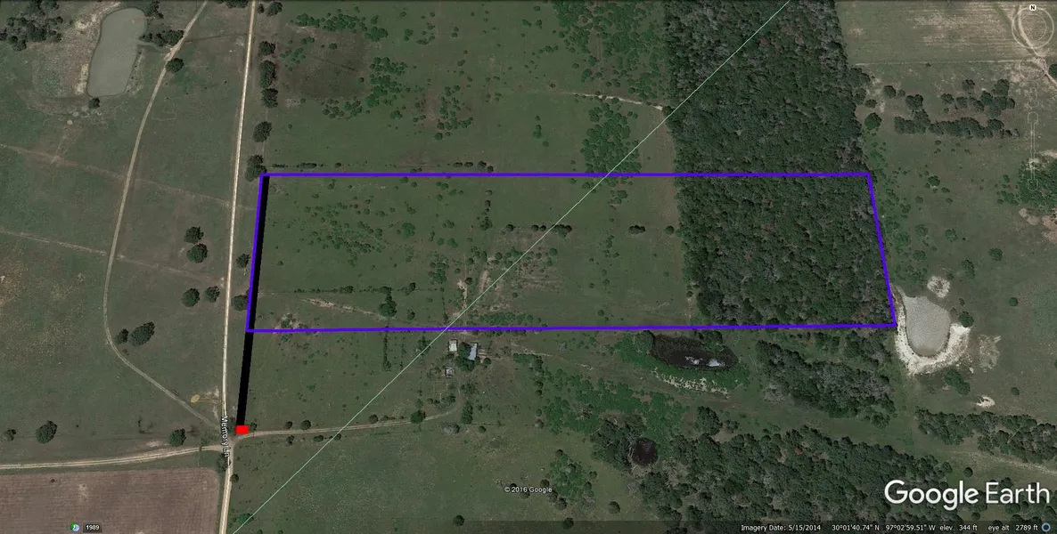 From La Grange, take Hwy 77 N for approx. 7 miles, then turn left onto FM 153. Drive for approx. 11 miles (through Winchester), then turn right onto Wormley Lane. Roadway easement begins where county maintained road ends, due north. From Austin, take HWY 71E toward Bastrop, continue on HWY 71E through Bastrop towards Smithville, take the TX-95 S/TX-230 Loop ramp to Smithville/Flatonia. Follow signs for FM 153, and continue on FM 153 for 9 miles until you see Wormley Lane on the left.