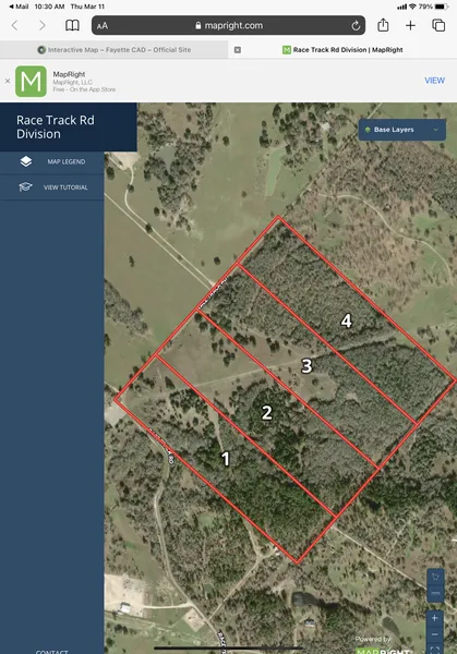 Research Parcel InformationFrom La Grange take Hwy 77 north to Racetrack Road. Cross the bridge an go past 2 gates on your right and you will see the stakes marking the corner lot numbers written on stakes.