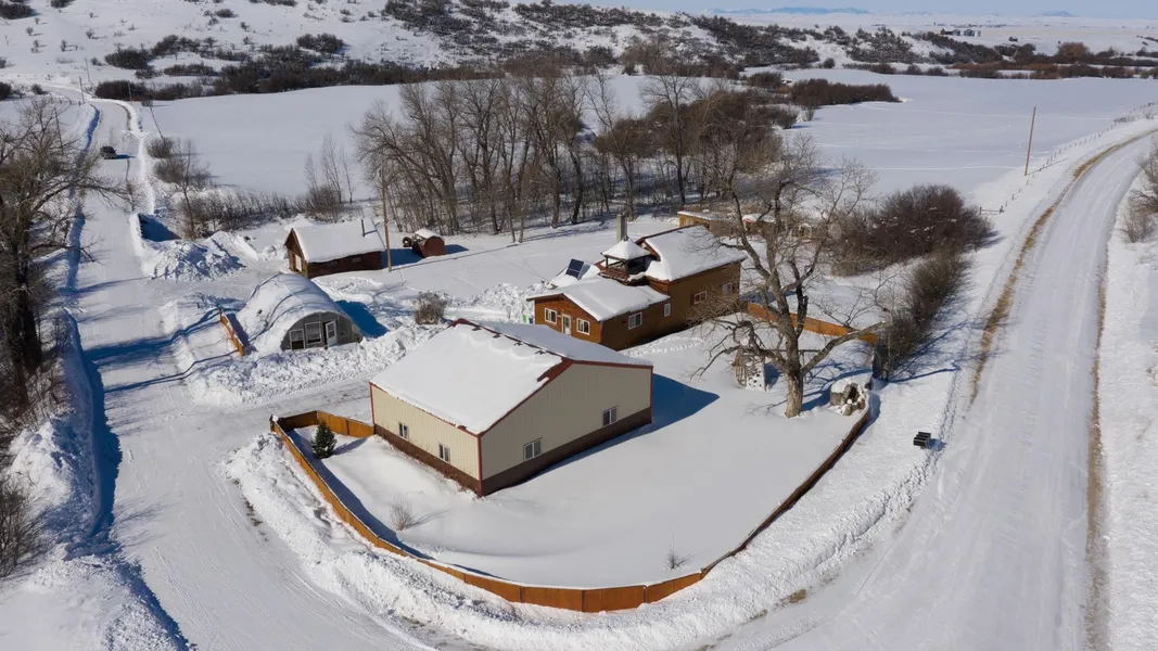 This property includes 1.94 acres with a Residence, Garage, Two Greenhouses and Pole Barn. The home has 1,748 square feet with 814 sqft finished basement. There is an open kitchen and dining room area with updated Hickory cabinets and newer countertop. The home has 2 bedrooms, 2 baths, and 2 living spaces. The house is heated by electric wall heaters, wood, gas and pellet stoves. The home has had improvements such as new siding and metal roof. Outbuildings on the property include a Pole Frame Building, built in 2015 includes 1,368 sqft with metal siding and roof, concrete flooring, and overhead doors. There is a small hand hewn log building with metal roof. Two greenhouses and other small outbuildings. This property is virtually surrounded by ranching operations. The Residence is a converted school house. This is an excellent opportunity to live out of town and enjoy the country life.
