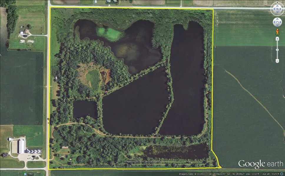 Sportsmans here is the property you have been dreaming about! Over 65 acres of controlled ponds, already stocked, fish all year on you own private spot, no need to fight a crowd. Want to start your very own fishery or start your own Walleye pond, this is your place! When you look at the aerial map you will see this is the habitat hang out for the wildlife in this area, with all the water and ag land bordering all four sides, you can't go on this property without seeing wildlife. Mature whitetails are well known for this area and the travel from the SE during the rut from the York woods. This property would be an ideal spot to build your weekend retreat or company getaway to host clients for a fun filled day or weekend of outdoor activities. You will not find a property that offers all of this entertainment in one location. Set-up a trap or rifle range to keep your skills sharp. The property has had millions spent over many decades building the dykes around all of the ponds with a great trail system throughout the entire property. This property hunts very big, many spots to set-up stands or blinds for deer hunting and room to leave for sanctuaries or food plots. All of the ponds have waterfowl blinds already built and ready for use, bring your ammo because this is the hot spot for waterfowl in the area. Two of the big ponds have home built pontoons for easy use for fishing. Plenty of room to store all of your equipment and toys with two storage buildings, 90x32, 26x70. Only a 35 minute drive from Rochester makes this an ideal location to bring family and clients.