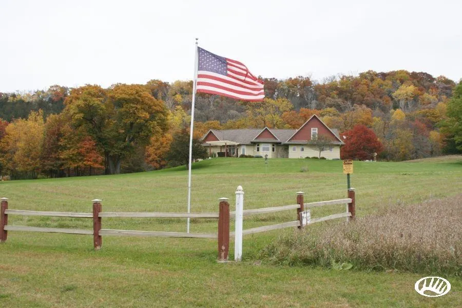 - Home overlooks property with bluffs behind and views of Rushford and Root River Valley