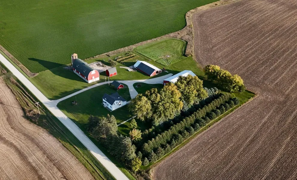 This picturesque 20-acre hobby farm is surrounded by a mature pine and maple windbreak with south facing panoramic views. Additional 140 acres of prime tillable available. The house was lifted in 2008 and a new ICF foundation was installed. The following upgrades were included: geothermal heat/air, new windows, roof, new electric and plumbing, radon remediation and propane backup furnace. The house was added on to and completely remodeled to create a 3075 square foot 4 Br/2 Ba farmhouse with dormers and south facing front porch with maintenance free decking. The 2.5 car 28x32 garage was built new in 2011 and includes a fully insulated and heated workshop in the upper level. The 40x88 outbuilding has a 28x40 heated and insulated workshop. The large hay barn has amazing timber beams and is in great shape. Three other outbuildings have new tin and are in good condition. 14 acres of tillable. Two mature apple trees sit next to a vineyard and garden area. Seller installed new septic system in 2023. Forestville State Park is 4 miles north. Rochester- 40 miles, Cresco-12 miles, and Decorah-25 miles.